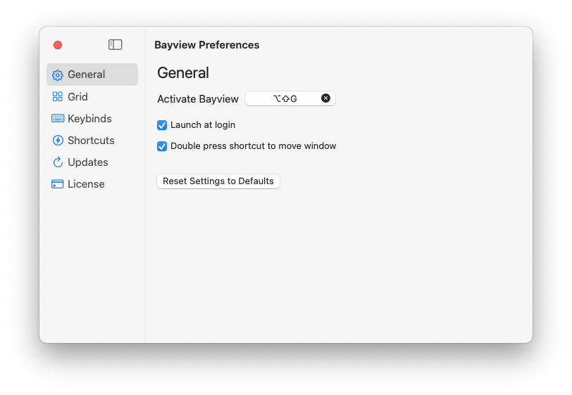 Set up custom shortcuts for your favorite configurations to apply them without having to open the Bayview grid.